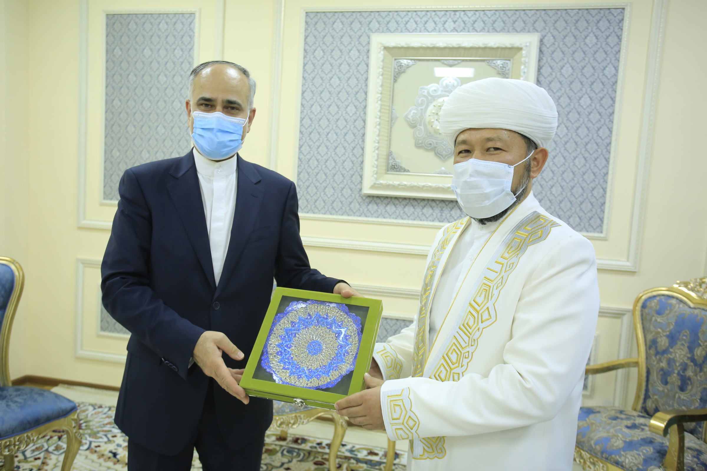 Elordada Qazaqstan musylmandary dinı basqarmasynyń tóraǵasy Naýryzbaı qajy Taǵanuly Iran Islam Respýblıkasynyń Qazaqstandaǵy Tótenshe jáne ókiletti elshisi Madjıd Samadzade Sabermen kezdesti.