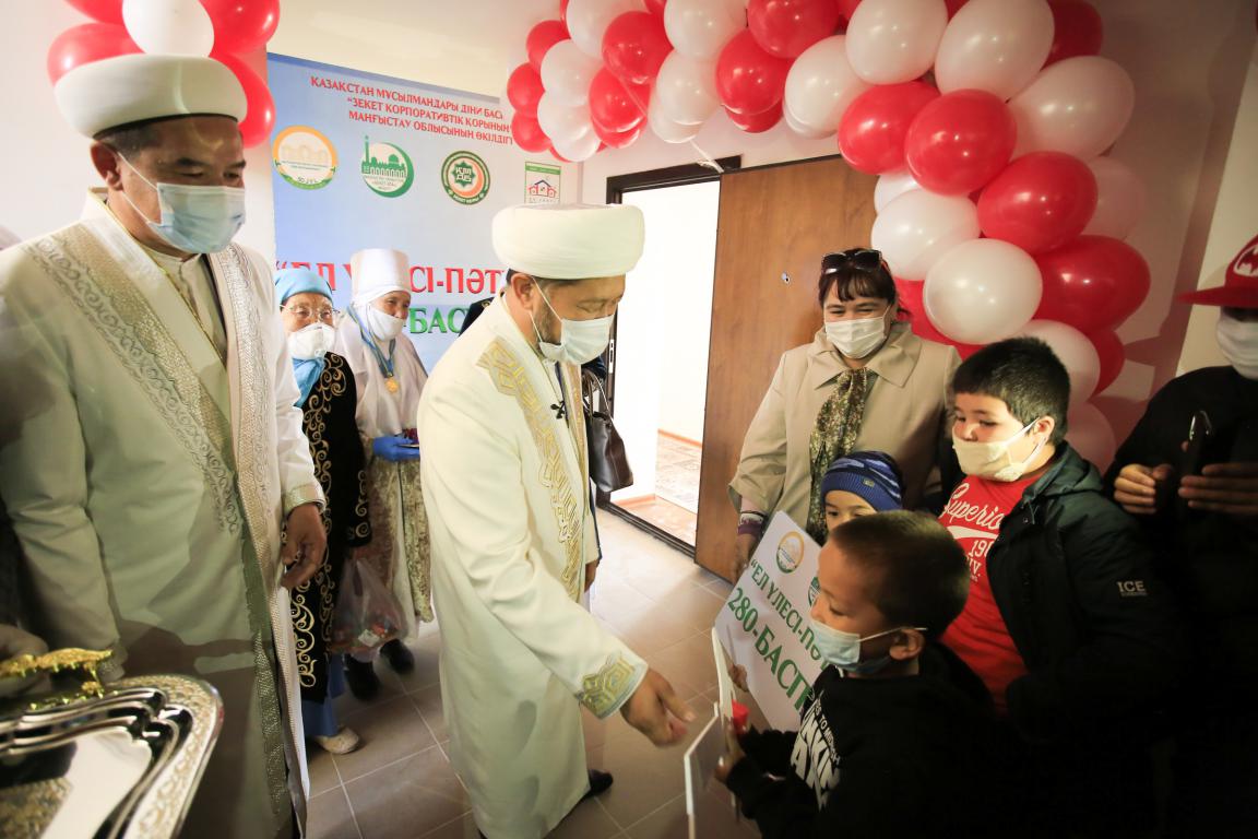 QMDB Tóraǵasy, Bas múftı Naýryzbaı qajy Taǵanuly Mańǵystaý oblysyna jasaǵan saparynda «Zeket» qorynyń «El úlesi – páterge» jobasy aıasynda muqtaj otbasyna páter syılaý rásimine qatysty.
