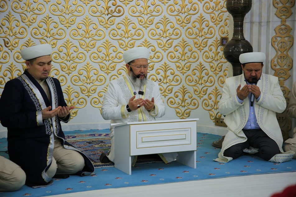 Bas múftı Quran Kárimniń sońǵy aıattary oqylǵan taraýyq namazynan keıin hatym duǵasyn jasap, jer betine beıbit ómir, elimizge amandyq, jurtymyzǵa tynyshtyq tiledi. Quran Hatym saýabyn eldigimizdiń jolynda eren eńbek etken asyl tulǵalardyń rýhyna baǵyshtap ótti.