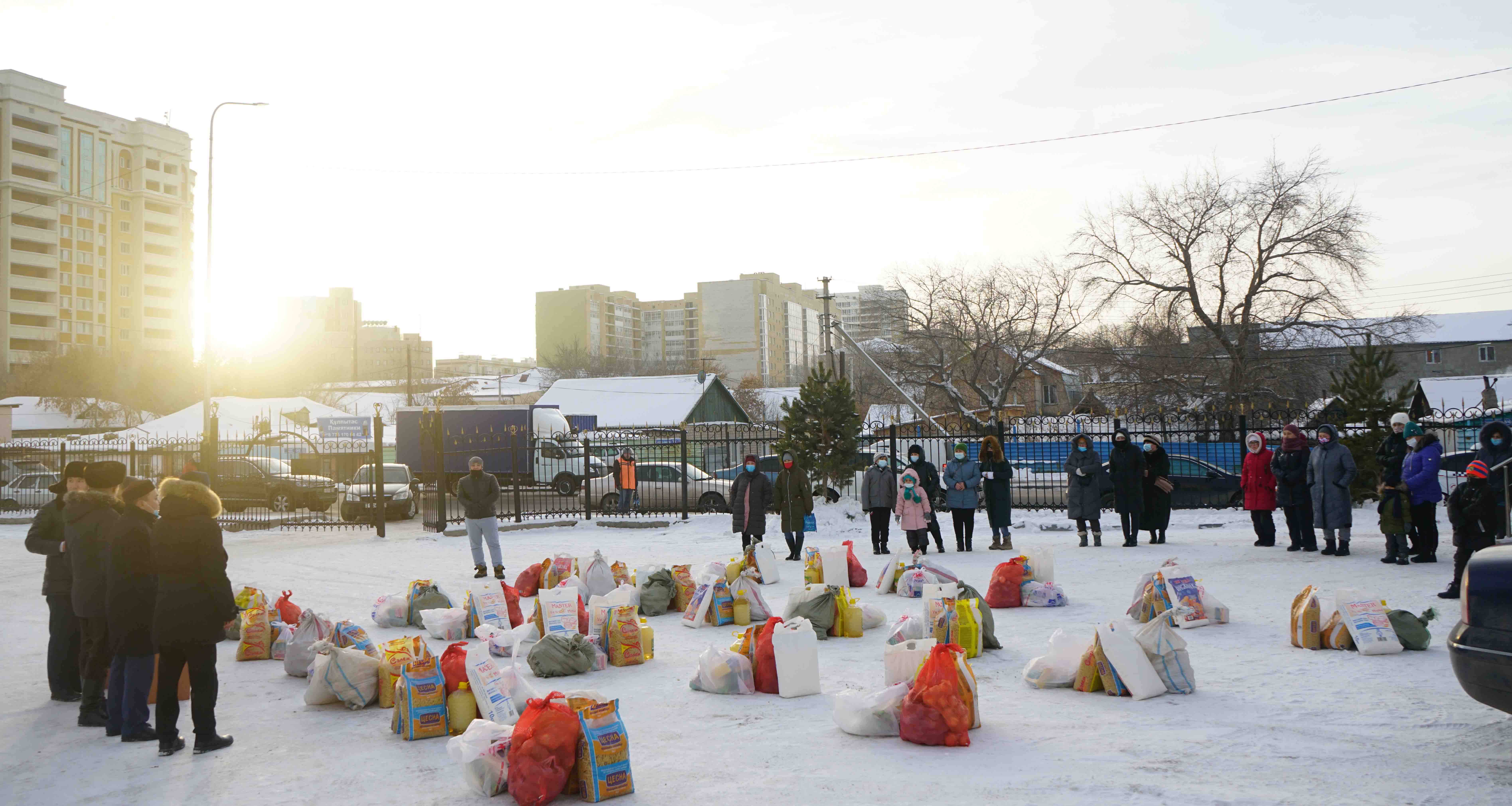 Qaıyrymdylyq sharasy aıasynda kóp balaly, áleýmettik az qamtylǵan 30 otbasyna kúndelikti turmysqa qajetti azyq-túlik úlestirildi.