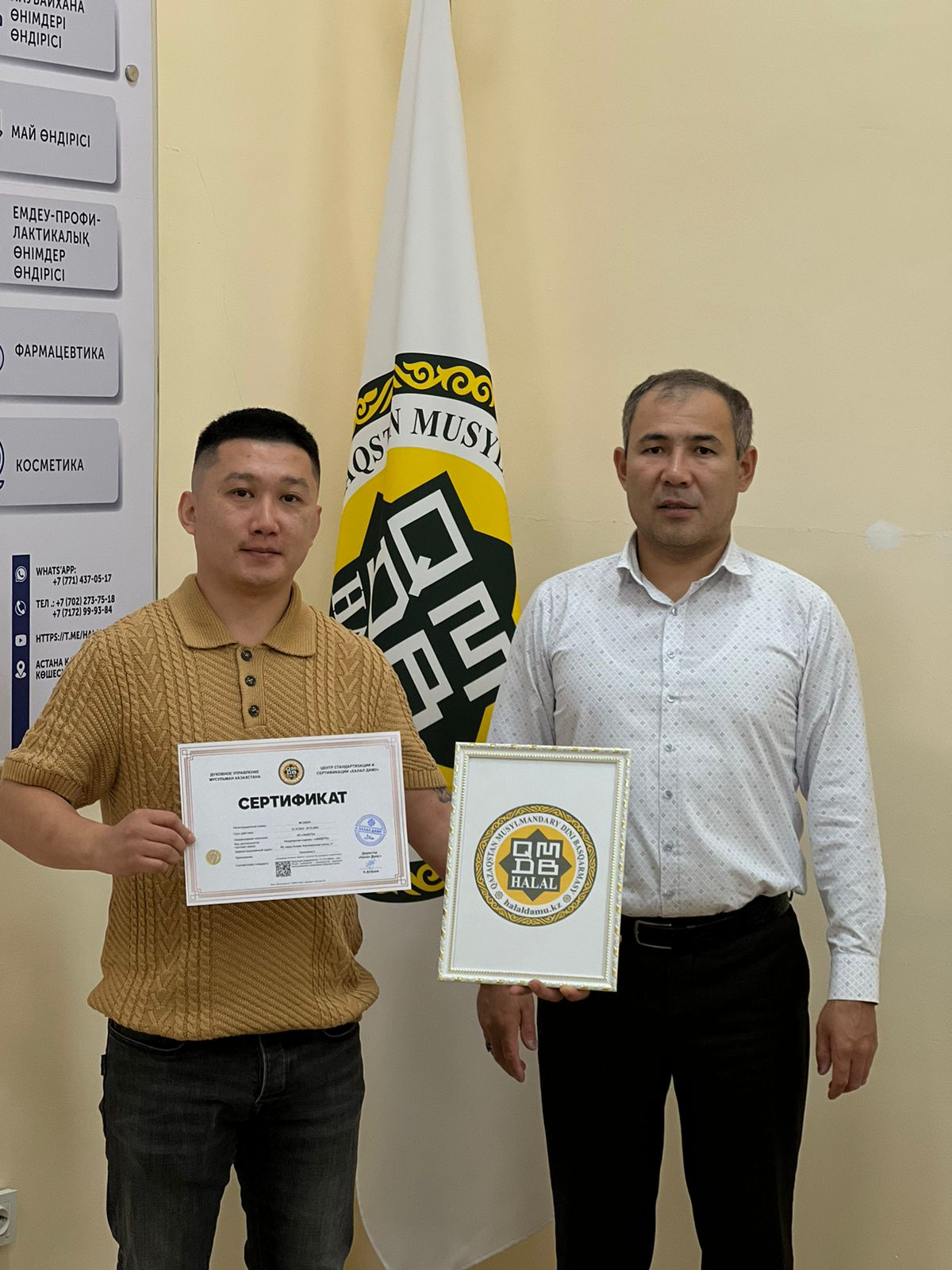 Astana qalasyndaǵy «JANZETO» kondıterlik ónimderi sertıfıkattaldy. Kondıterlik dámhana ıesi dinı basqarmaǵa arnaıy kelip, «Halal Damý» dırektory A.Asqarbekulynyń qolynan «QMDB HALAL» sertıfıkatyn aldy.