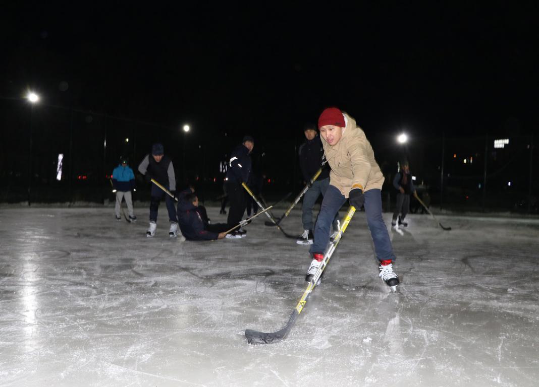 Muz alańynda shaıbaǵa talasqan ýnıversıtet qyzmetkerleri munyń qarbalas jumys kúninen keıin tamasha sergý alańy bolǵanyn atap ótti.