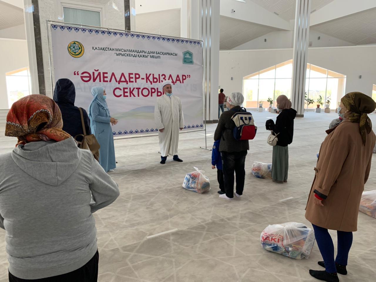 Búgin Nur-Sultan qalasyndaǵy «Yryskeldi qajy» meshitinde 40 otbasyǵa qýanysh syılaǵan qaıyrymdylyq sharasy bolyp ótti. Atap aıtqanda, «Yryskeldi qajy» meshitine qarasty «Názik» qyz-kelinshekter klýbynyń uıymdastyrýymen ulyq mereke qarsańynda 40 muqtaj otbasyǵa azyq-túlik sómkeleri úlestirildi.