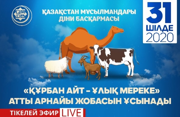 «Qurban aıt – ulyq mereke» dep atalatyn merekelik baǵdarlama tikeleı Efırde Nur-Sultan ýaqytymen 08:00 men 09:00 aralyǵynda ótedi.