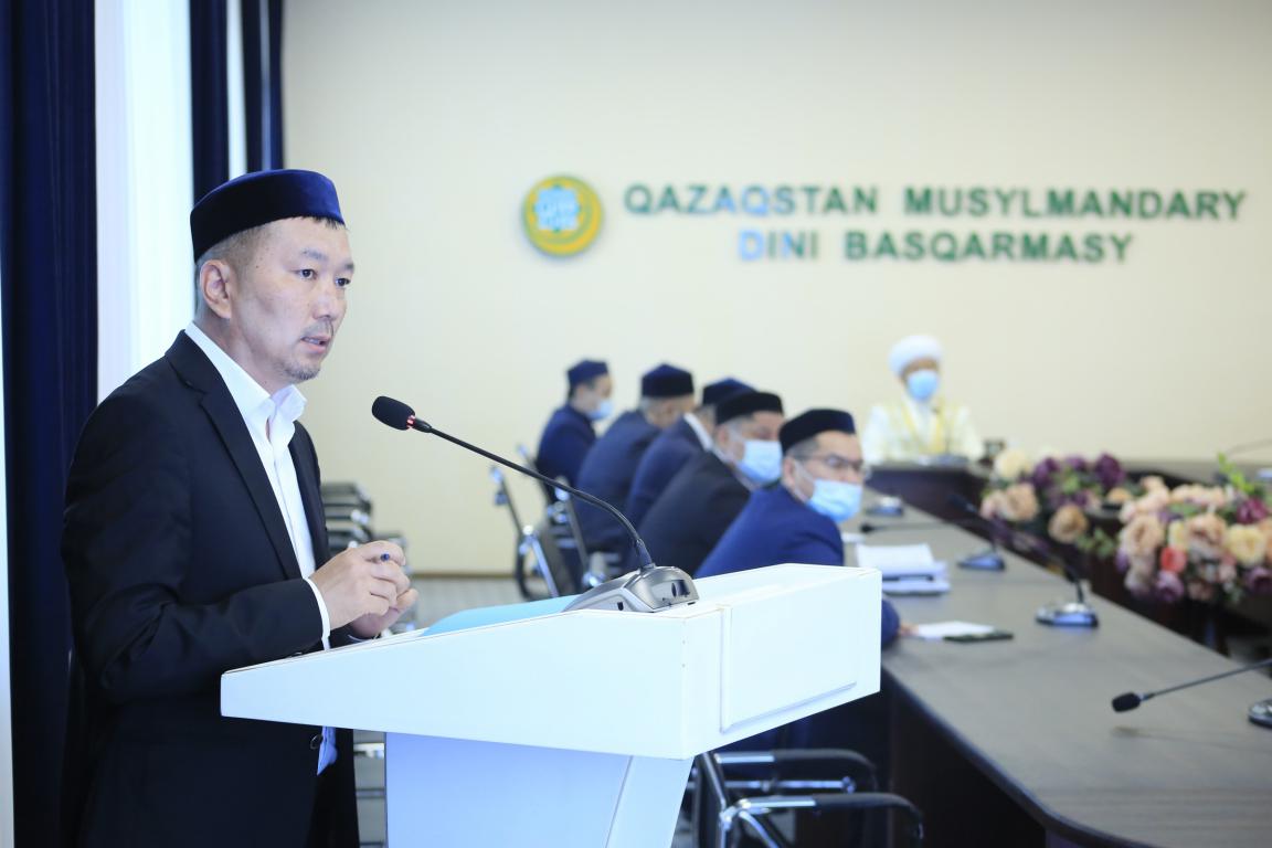 QMDB Dinı bilim jáne kadr daıarlaý bóliminiń meńgerýshisi Smaıyl Seıtbekov bólimge qatysty jáne Ádep keńesiniń jumysymen tanystyrdy.