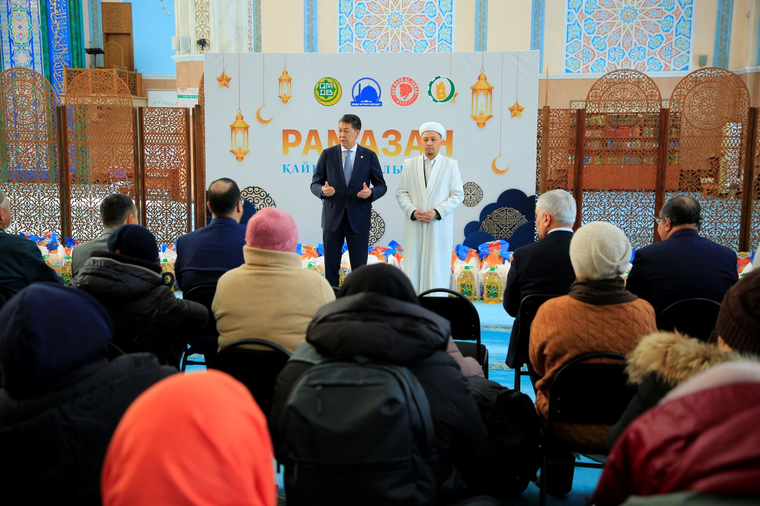 АҚИҰ Бас директоры, Елші Берік Арын шараға арнайы қатысып, Рамазан айының ынтымақтастық пен өзара қолдауды күшейтетін ерекше кезең екенін айтты. Мешіттің бас имамы Нұрлан Рамазанов қайырымдылық көмегін алуға келген отбасыларды қасиетті Рамазан айының келуімен құттықтап, мешіт ұжымы мұқтаж жандарға тұрақты түрде қолдау көрсетіп келе жатқанын атап өтті.