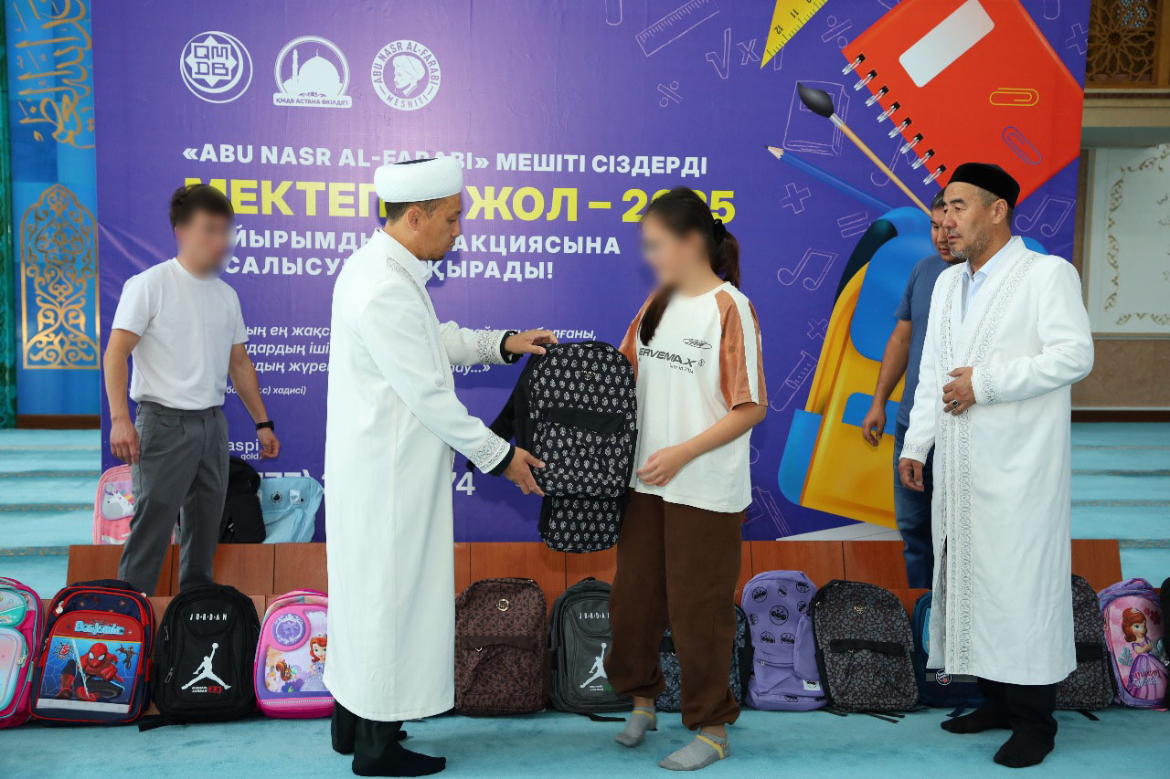 Айта кетейік, жыл сайын ҚМДБ төрағасы, Бас мүфти Наурызбай қажы Тағанұлының бастамасымен республика бойынша барлық мешіттерде дәстүрлі «Мектепке жол» қайырымдылық акциясы өткізіліп келеді. Оның мақсаты – әлеуметтік жағдайы төмен, көп балалы отбасылар мен жетім балаларға жаңа оқу жылына дайындық кезеңінде қолдау көрсету және мектепке баруына кедергі болатын жағдайлардың алдын алу.