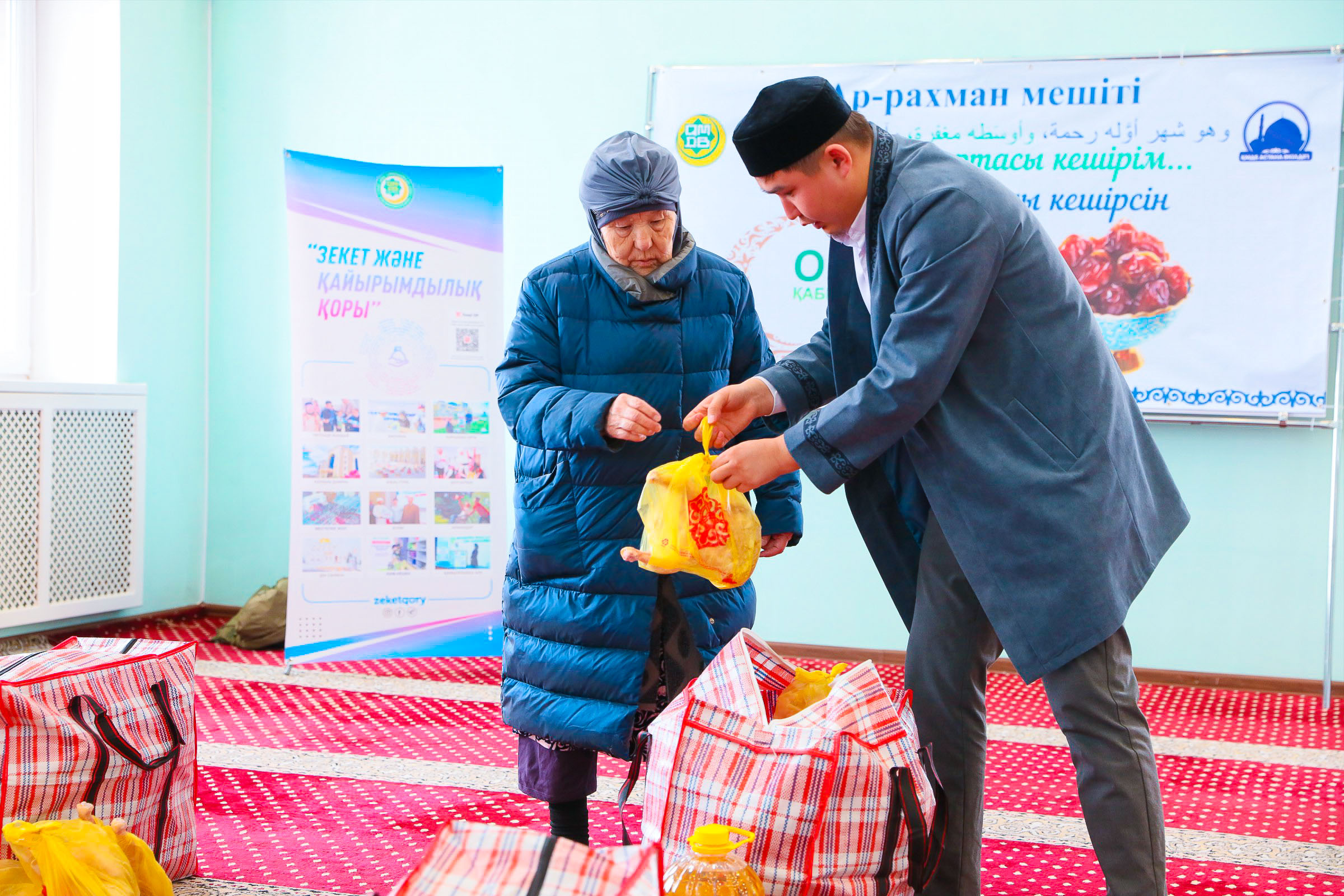 Қазақстан мұсылмандары діни басқармасы Астана қаласы өкілдігі «Зекет және қайырымдылық» қорының ұйымдастыруымен қасиетті Рамазан айында «Әр-Рахман» мешітінде мұқтаж жандарға қайырымдылық іс-шарасы өтті.