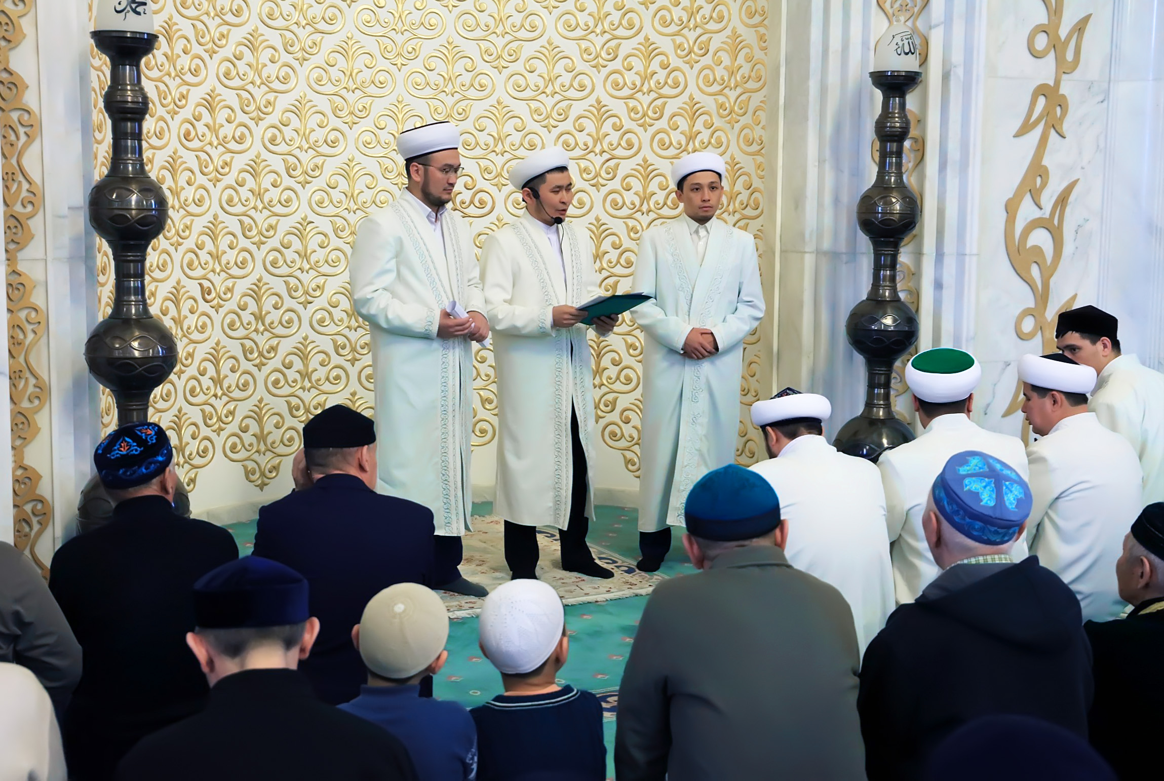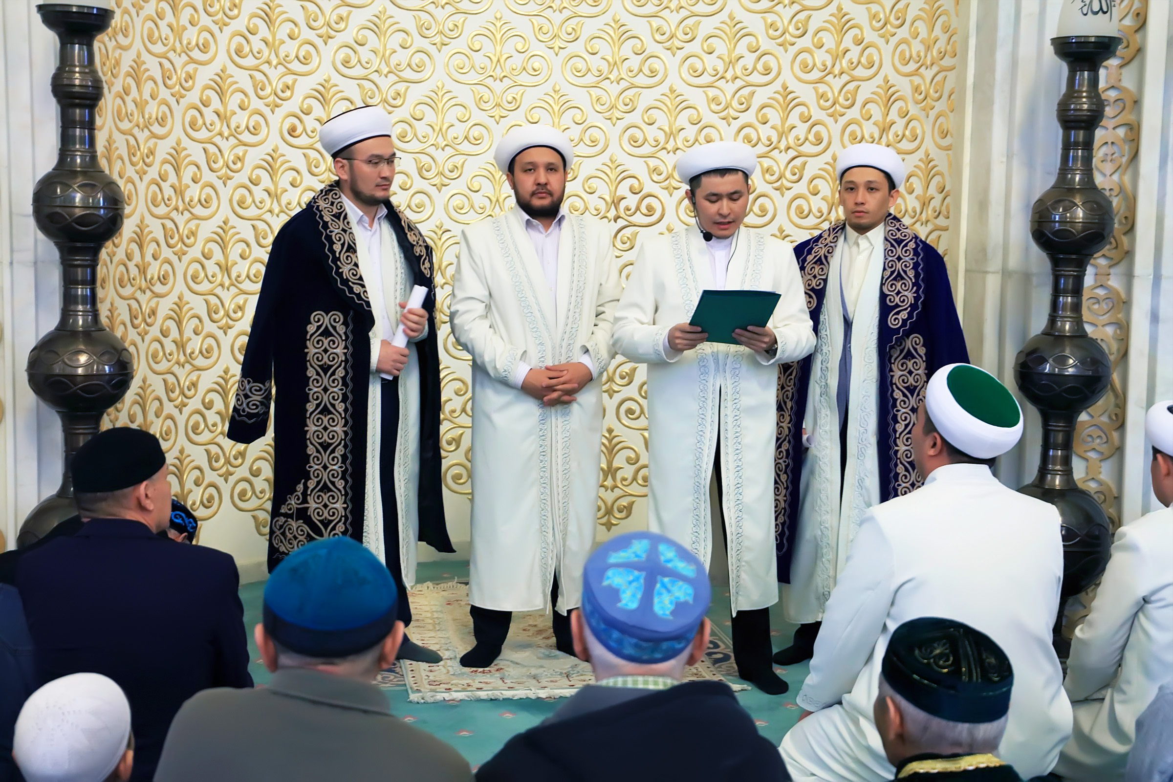 Сондай-ақ, Бас мүфти бұйрығымен республикалық «Әзірет Сұлтан» мешітінің наиб имамы қызметіне тағайындалған Садырханов Жұманазар Өсерханұлын жамағатқа таныстырып өтті. Тәуелсіз еліміздің алғашқы әрі атақты қариларының бірі Жұманазар Өсерханұлының есімі мен еңбегі, қабілеті мен қызметі Елорда жамағатына кеңінен таныс. Білікті маманның Бас мешіттегі қызметіне сәттілік тілеп, абыройы арта беруіне тілектестігін жеткізді.