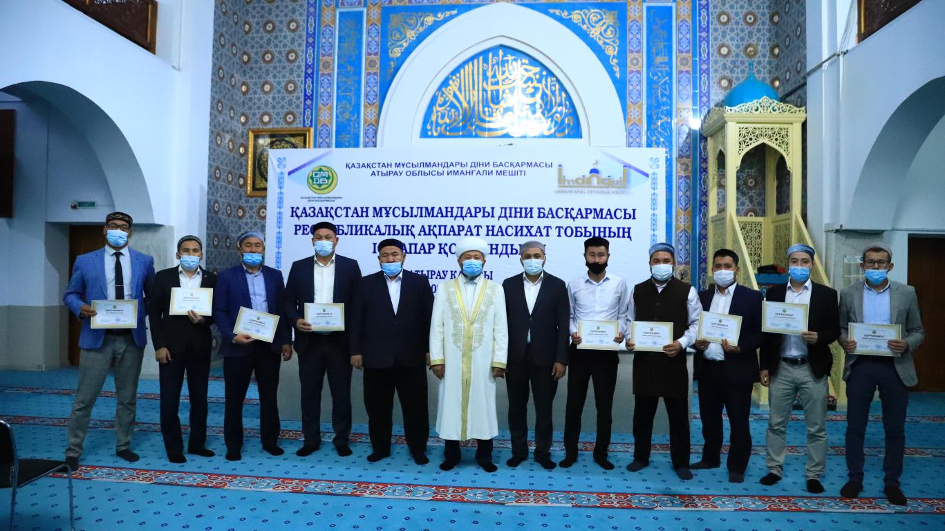 Қазақстан мұсылмандары діни басқармасының төрағасы Наурызбай қажы Тағанұлы Атырау облысына жасаған іс-сапарында «Жат ағымның алдын алу және оның әдістемесі» тақырыбында өткен 4 күндік семинарға қатысқан өңір имамдарына сертификат табыстады.