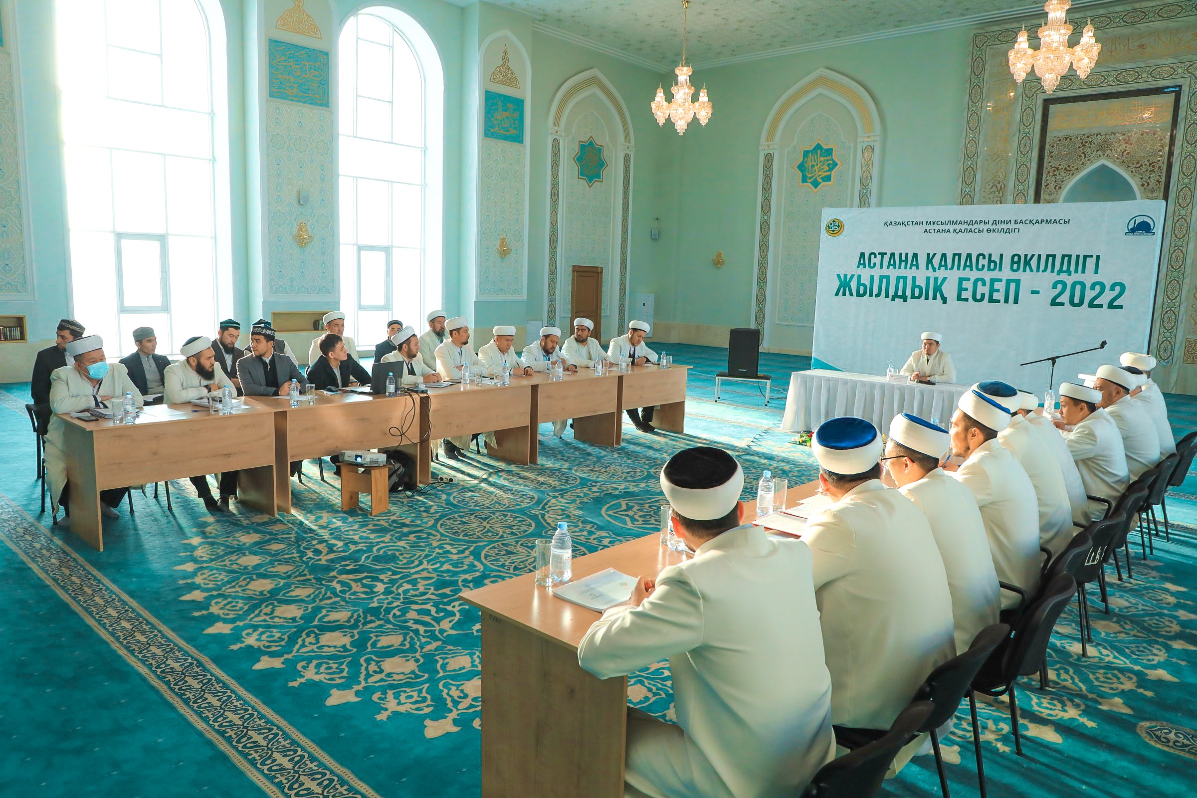 Қазақстан мұсылмандары діни басқармасының Астана қаласы өкілдігі бойынша жылдық қорытынды жиналысы өтті. Жиынға қаладағы 12 мешіттің бас имамдары қатысып, жыл бойғы атқарылған шаралар есебін баяндады. ҚМДБ бекіткен жеті бағыт аясында атқарылған жұмыс есебі арнайы слайд арқылы көрсетіліп, жазбаша нұсқасы кітапша түрінде өкілдік қызметкерлеріне ұсынылды.
