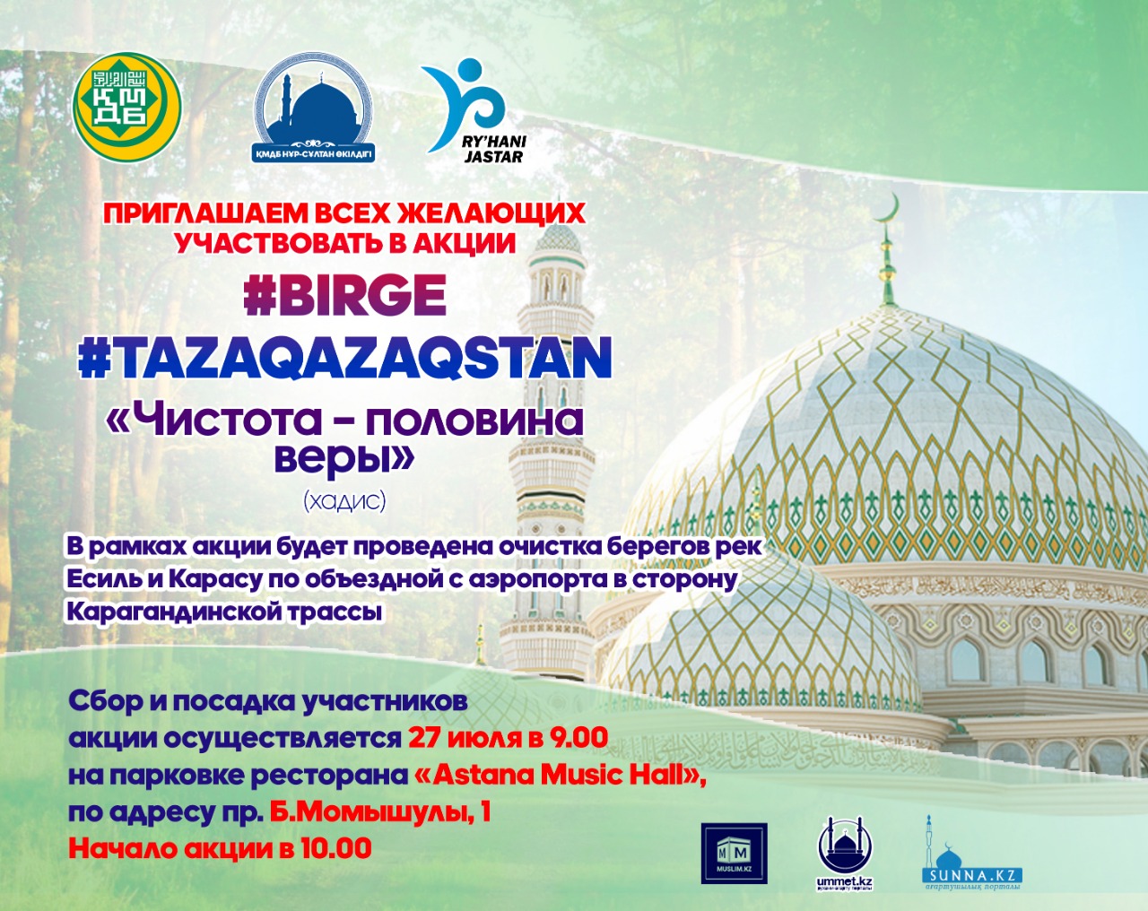27 июля в Нур-Султане пройдет экологическая акция #Birge #TazaQazaqstan