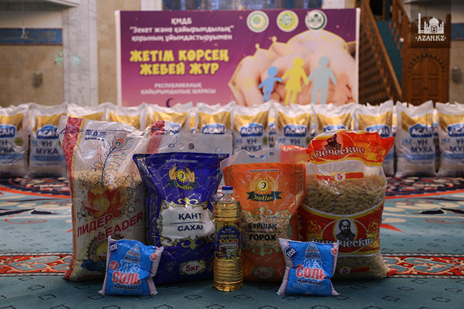 Благотворительную акцию запустили в Центральной мечети г. Алматы при поддержке местных предпринимателей. Продовольственные товары, где есть все необходимое: мука, рис, макароны, подсолнечное масло и не только, раздали малообеспеченным и нуждающимся. Мероприятие проходит в рамках Республиканского проекта «Жетім көрсең жебей жүр!» по инициативе Верховного муфтия Наурзыбая кажы Таганулы и при содействии фонда «Зекет».