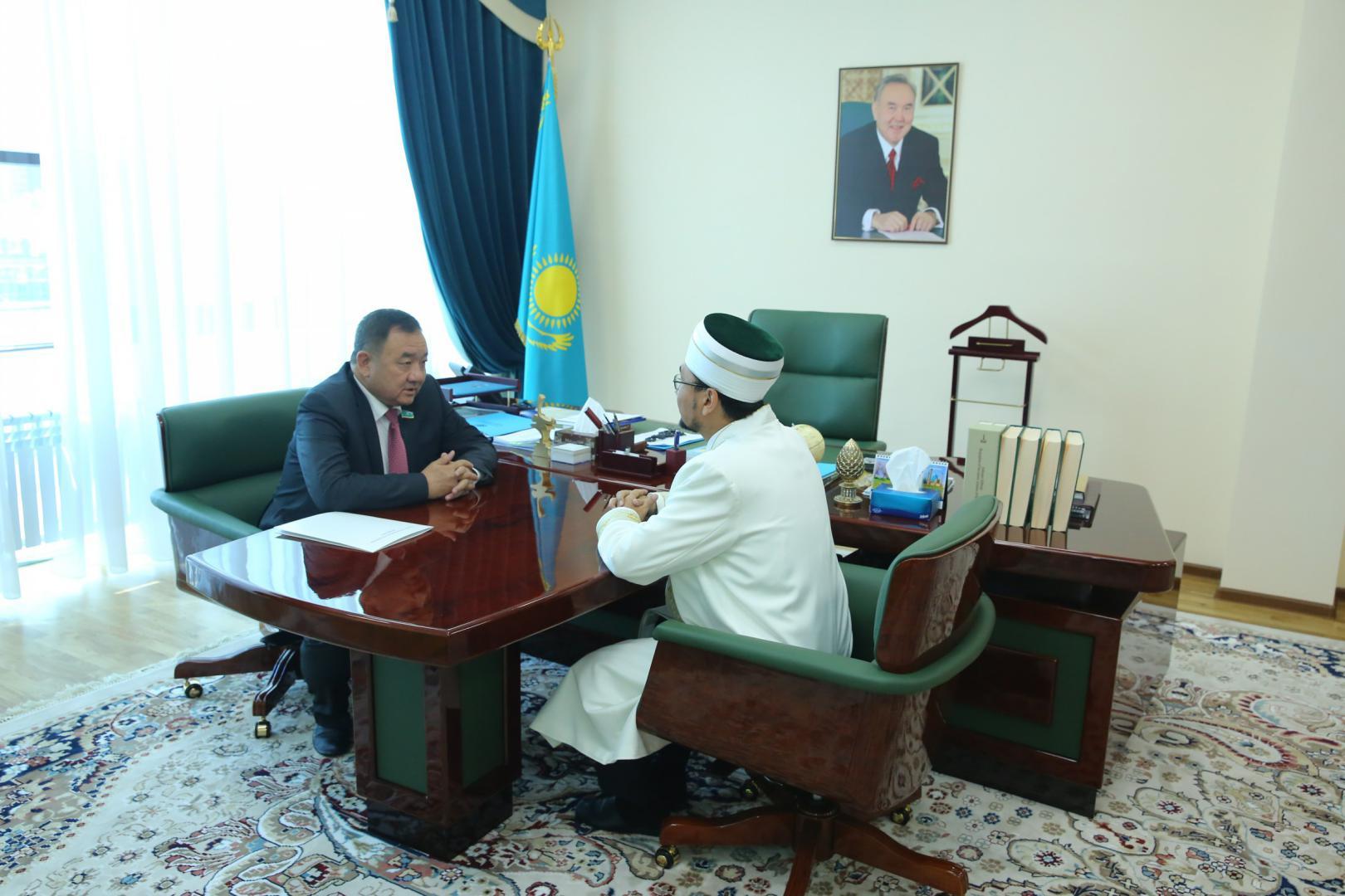 В Духовном управлении мусульман Казахстана в Нур-Султане Верховный муфтий Серикбай кажы Ораз встретился с депутатом Мажилиса Парламента Шакиром Хахазовым.