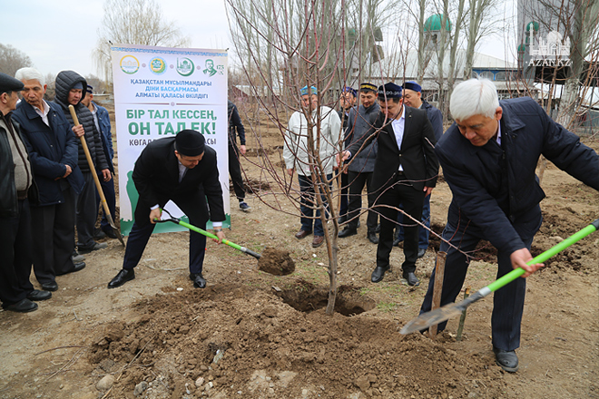 Традиционная кампания по посадке в этом году еще раз подтверждает, что мечети Алматы объединены не только духовностью, но и здоровьем и чистотой. В ходе мероприятия главный имам Еркинбек Шокай посетил новую мечеть "Нур", осмотрел вспомогательное здание мечети, строительство которого будет завершено в Священный месяц Рамадан, а также ответил на вопросы джамаата.