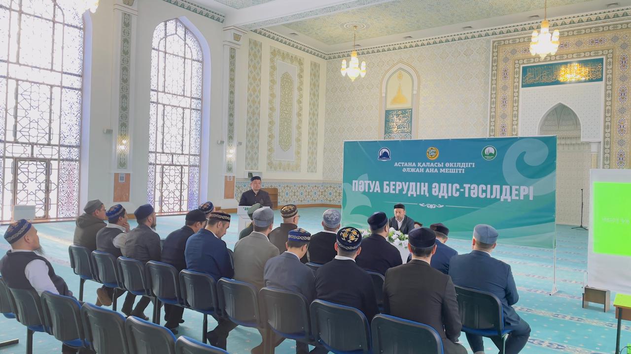 Очередной семинар, направленный на повышение квалификации имамов столицы, прошел в мечети «Әлжан ана» в г.Астана. Команда священнослужителей во главе с главным имамом города Ерболатом Жусуповым приняла участие в семинаре и обновила свои знания о фетвах.