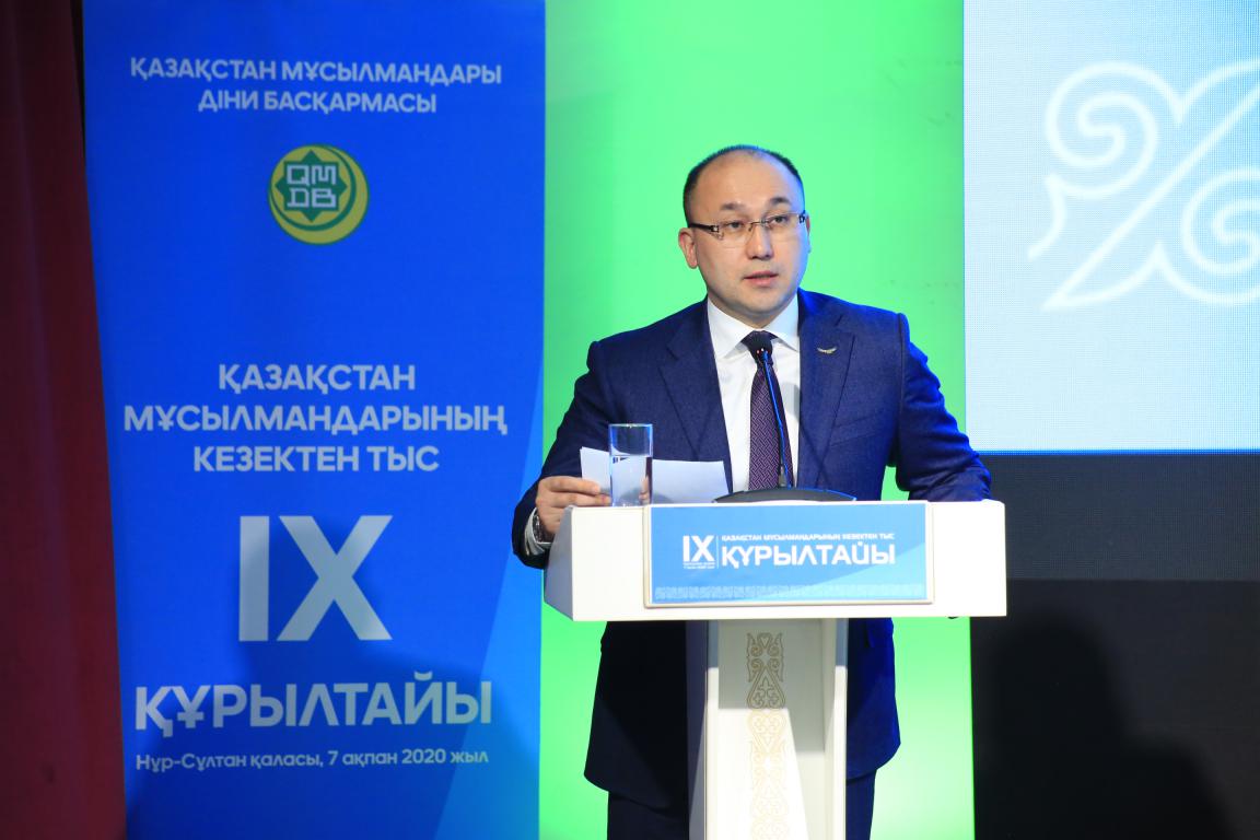 Министр Даурен Абаев выступил с речью на ІX Курултае ДУМК