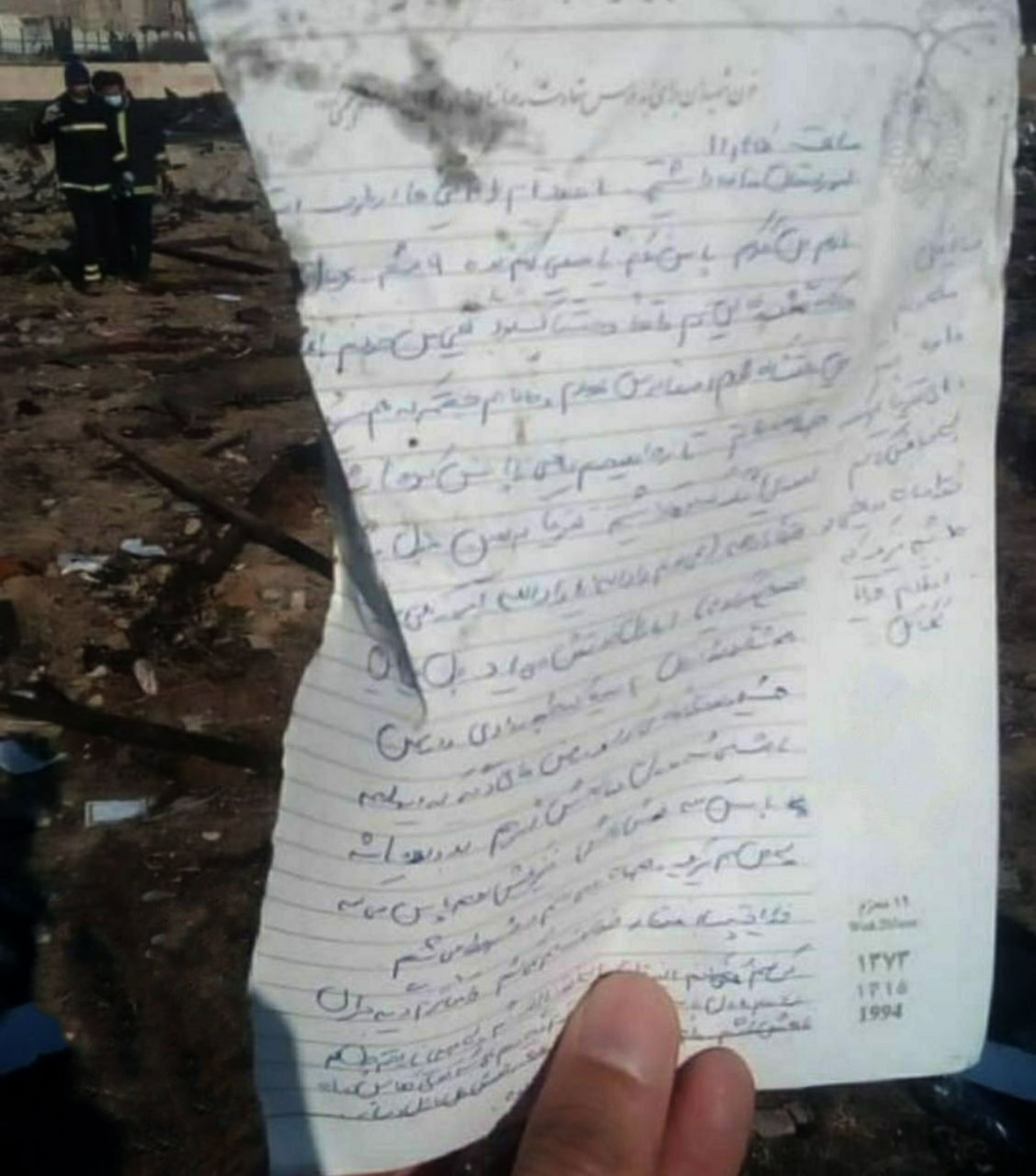 Среди обломков разбившегося в Иране украинского самолета спасатели нашли рукописную записку. Об этом сообщает Telegram-канал «Украина 24/7». На листе бумаги студент-иранец просит Бога помочь с экзаменом.