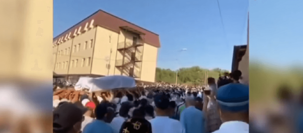 Корреспонденты телеканала опубликовали видео с похорон религиозного деятеля, на них можно увидеть большое скопление людей.