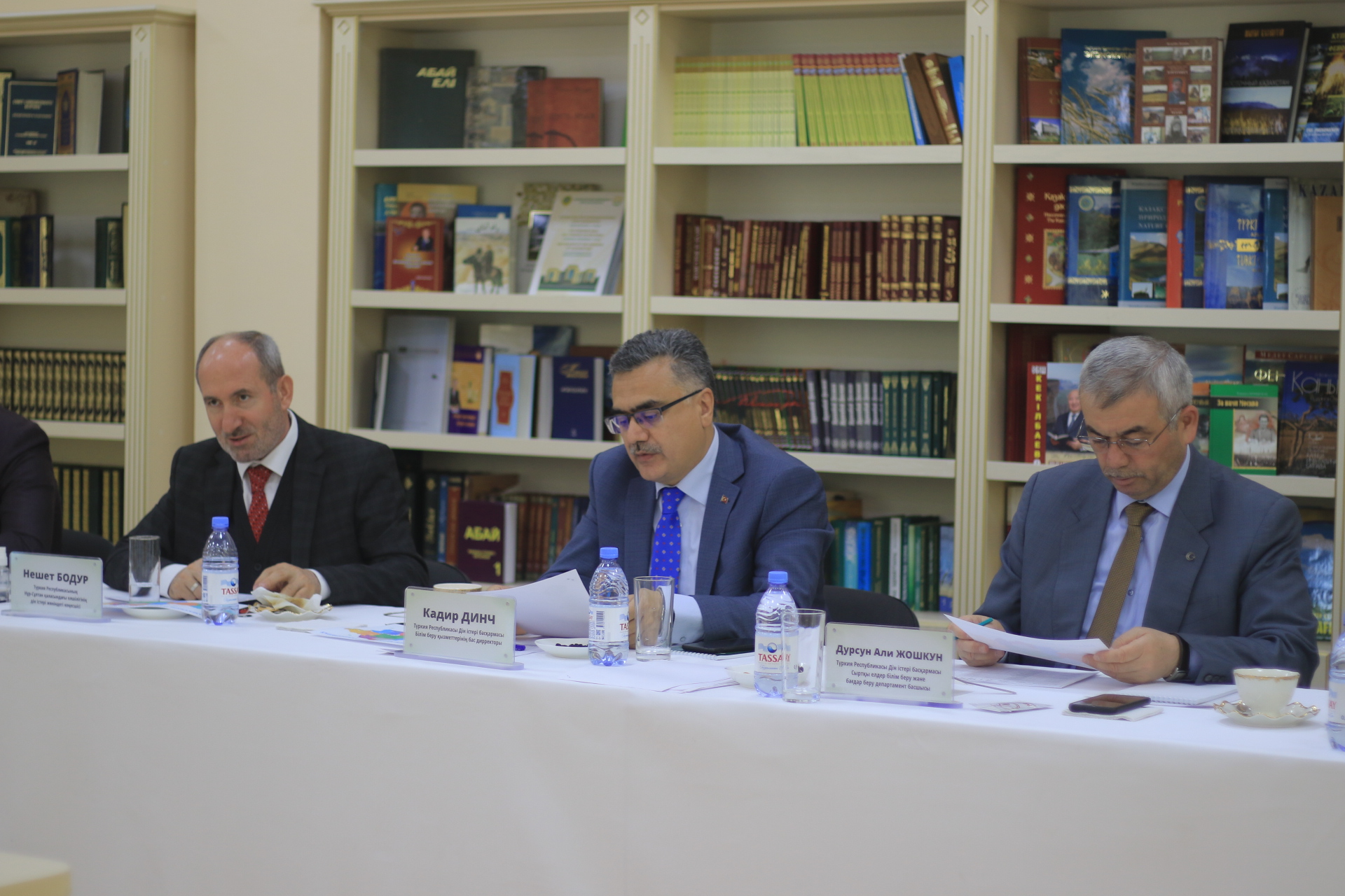 Экзамен принимают Кадир Динч, генеральный директор Образовательной службы Управления по делам религий Турецкой Республики, Джошкун Дурсун Али, Руководитель Департамента образования и педагогического развития за рубежом, д-р Абдуррахман Аккуш, Руководитель Центрального департамента высшего профессионального религиозного образования, Нечет Бодур, советник по вопросам религии Посольства Турецкой Республики в Нур-Султане.
