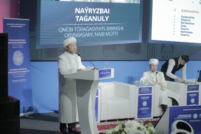 Заместитель Председателя Духовного управления мусульман Казахстана, первый наиб муфтий Наурызбай кажы Таганулы выступил с докладом на III Республиканском форуме имамов. Он провел экскурс и ознакомление присутствующих с Духовной платформой мусульман Казахстана «Семь духовных опор».