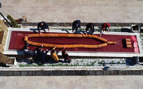 В турецком городе Адана изготовили самые большие в мире четки. Рекорд установил Насыр Фидан, который занимается созданием мусульманских четок уже более двадцати лет. Два года понадобилось мастеру, вырезать из гигантских камней 36 «бусинок», каждая из которых весить 27 кг. Всего гигантские четки весят 1 тонну.