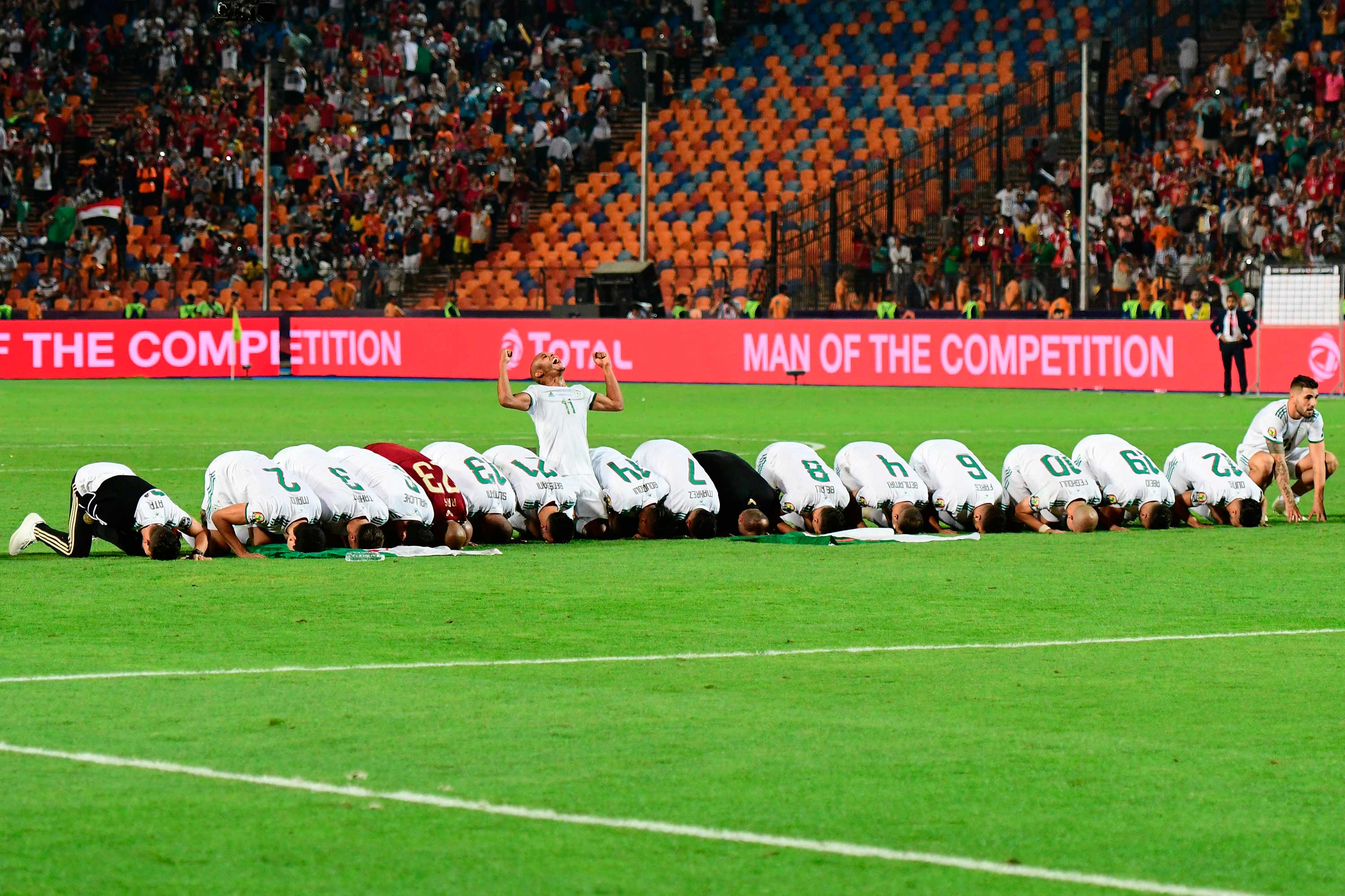 После победы в финале Кубка Африканских Наций игроки сборной Алжира по футболу совершили земной поклон (саджда).