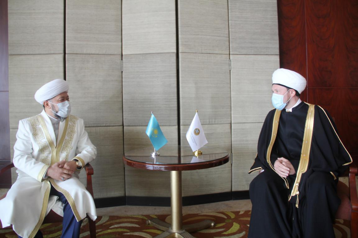 На встрече обсуждались вопросы укрепления сотрудничества между Духовными управлениями мусульман Казахстана и России в сфере образования, издательской, проповеднической деятельности и др.