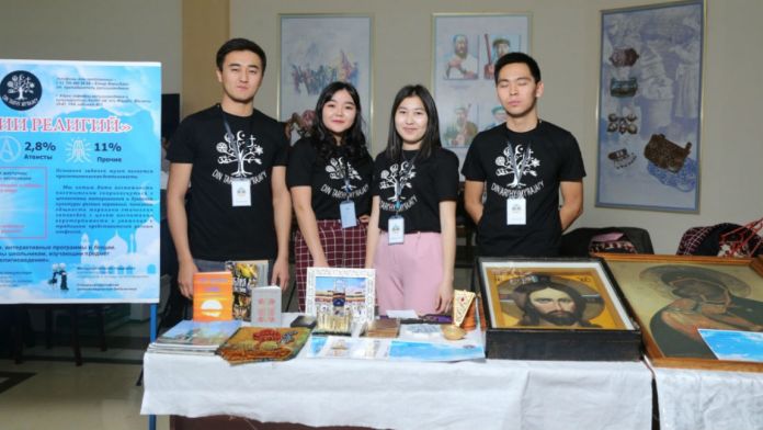 Преподаватели и студенты кафедры организовали для гостей выставку «Религия в повседневной жизни». По словам преподавателя, впервые профессиональная подготовка религиоведов началась в КазНУ в 1999 году и сейчас выпускники кафедры работают в органах государственного и муниципального управления, в аналитических службах КНБ и МВД, занимаются научно-исследовательской и преподавательской деятельностью.