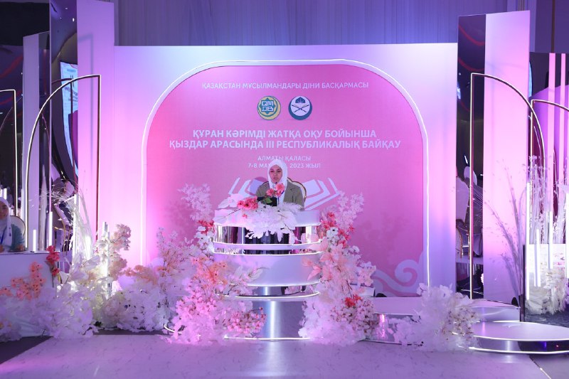 Республиканский конкурс начался с чтения аятов Священного Кyр`ана. На церемонии открытия выступил заместитель председателя ДУМК, наиб муфтий Кенжеали Коныратбайулы, который благословил участниц на удачу.