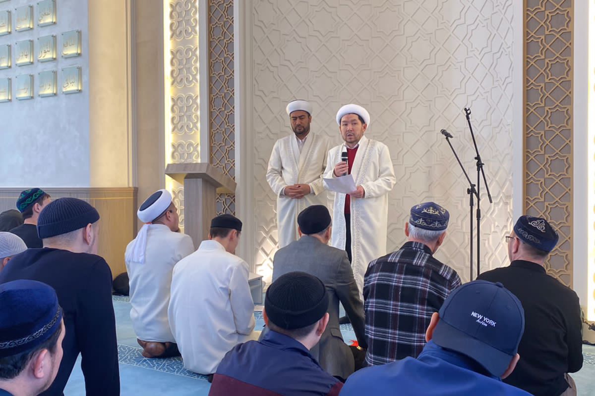 Главный имам мечети «Аль-Фаттах» Багдат Абдукаримов зачитал приказ Верховного муфтия собравшимся на пятничный намаз и представил нового наиб имам Откелбаева Бакытжана. Он пожелал плодотворной работы в новой мечети и успехов на посту.