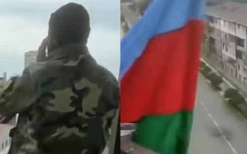 Видео азана прозвучавшего в мечети Шуши вызвало бурную реакцию в социальных сетях. На видео военный читает азан с минарета на котором установлен флаг Азербайджана. Звук призыва на молитву в первые за тридцать лет разносится по всему городу.