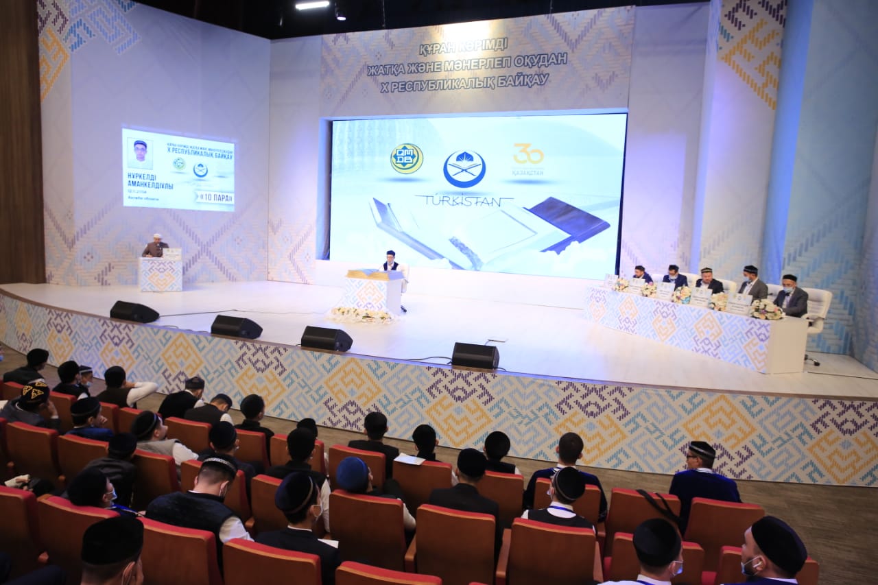 В культурном комплексе «Конгресс Холл» в Туркестане стартовал X Республиканский конкурс на чтение наизусть и выразительное чтение Священного Кyр`ана, организованный Духовным управлением мусульман Казахстана.