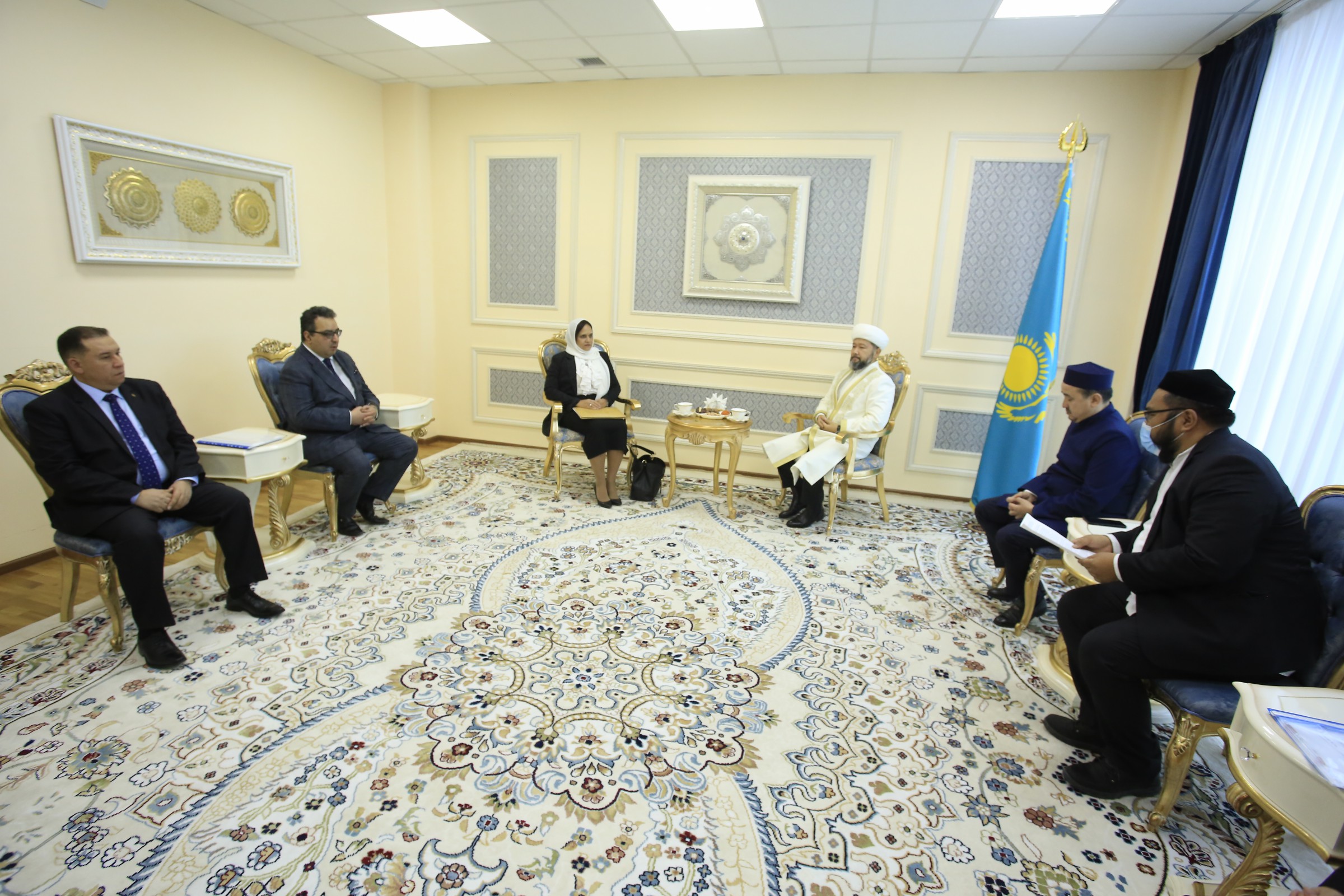 Председатель Духовного управления мусульман Казахстана Наурызбай кажы Таганулы в столице встретился с Чрезвычайным и Полномочным Послом Арабской Республики Египет в Казахстане госпожой Манал Ехия аль-Шиннауи.
