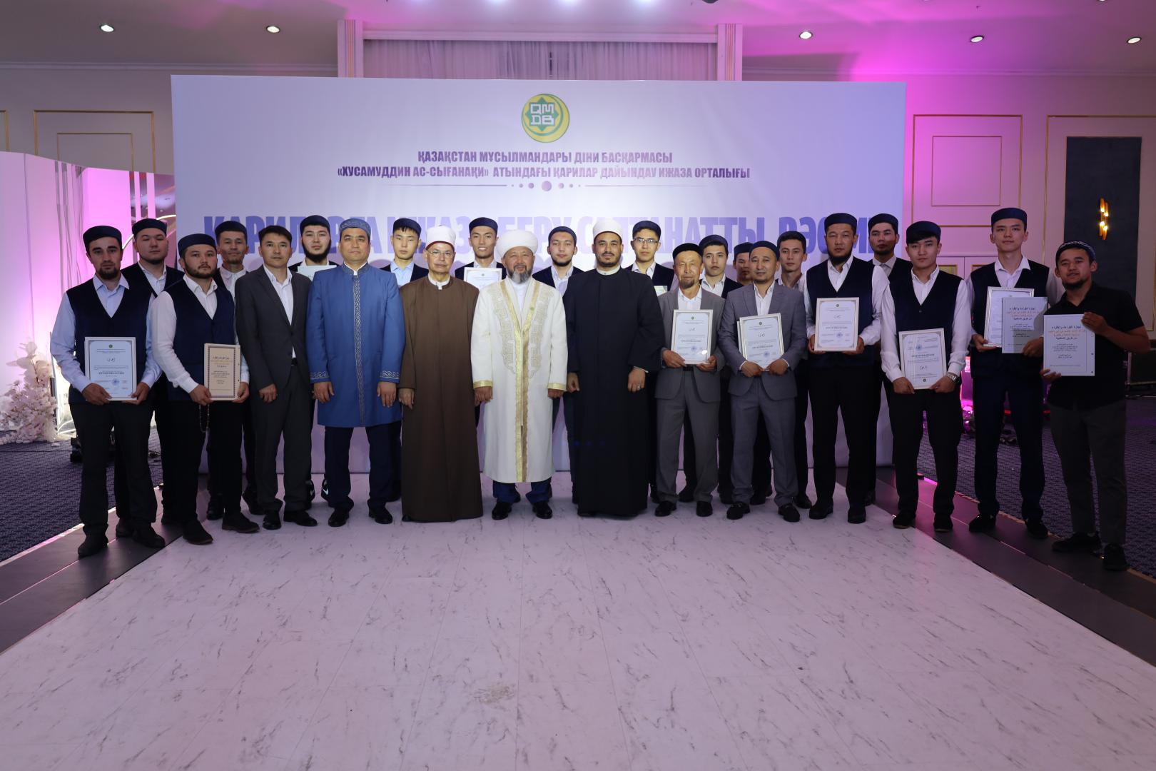 Следует отметить, что сертификаты были вручены 18 выпускникам учебного центра для Чтецов Кyр`ана имени Хусамуддина ас-Сыганаки. Ректор Египетского университета исламской культуры «Нур-Мубарак», профессор доктор Мухаммад аш-Шаххат Абдулхамид Мухаммад аль-Джинди, специально приехавший на торжественное событие, поздравил студентов и разделил их радость. Выпускникам были вручены сертификаты иджаза по риуаятам хафс и шугба Асым Кираата от хафиза Ибрагима Шаабан аль-Мурсиди аль-Азхари.