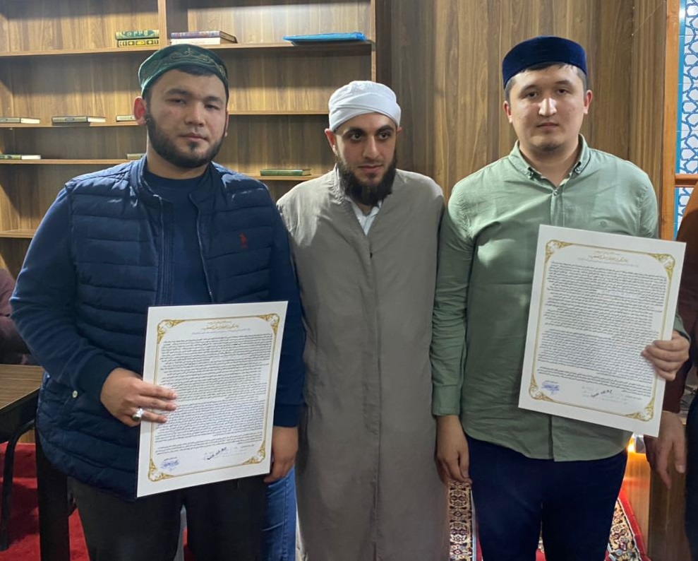 Аскар Ибадуллаев, выпускник колледжа-медресе «Астана» в столице, и Муртаза Балахмет, выпускник Республиканского центра чтения старейшин имени «Кауам ад-Дина аль-Иткони аль-Фараби ат-Туркестани» получили иджазу риваятов «Хафс» и «Шу`ба» Священного Кур`ана кыраатом «Асим».
