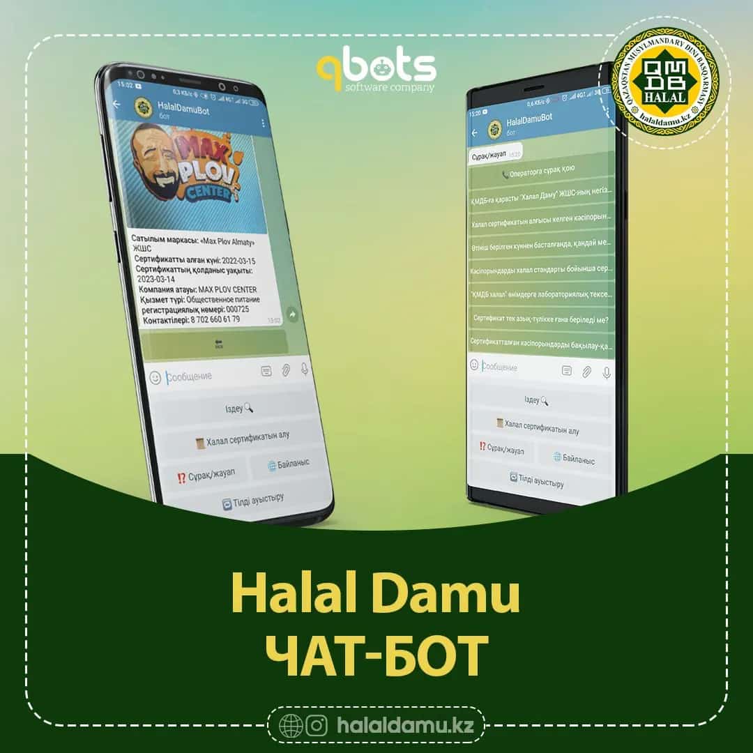 Сообщаем, что компании «Халал Даму» и «qBots» запуcтили телеграм-бот @halal_damu_bot! По многочисленным просьбам, упрощенный формат, новейший бот с визуальным дизайном, уже готов к пользованию потребителей.