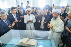 Новости страны Кур`ан, подаренный Марал Ишаном Кенесары Хану размещ...В городе Туркестан состоялась церемония размещения в мавзолее Ходжи Ахмета Ясави Кyр`ан...